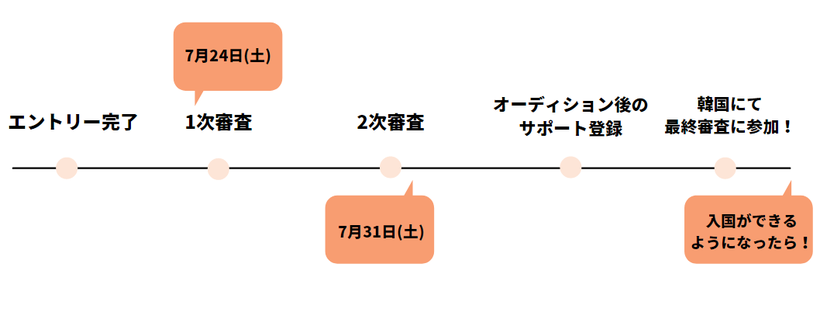 | ⑥ | 7月31日(土)、10社の韓国芸能事務所が合同で審査をするオーディションに参加 |