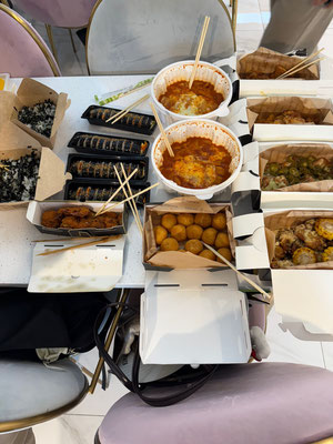 先生が韓国料理をたくさん出前で注文してくださりみんなで美味しいキンパやトッポギ、チキンなどを食べました。