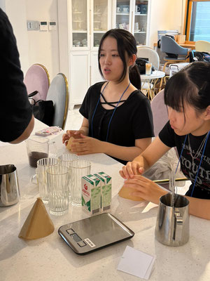 そして、韓国の学生さんたちがたまに助けてくれたり声をかけてくれたりしてくれたおかげで緊張せずにスムーズにコーヒーを作ることが出来ました。コーヒーを作る時には1回1回何グラムと計らないといけなくて私がこれを毎日するのならめんどくさくなるだろうなーと思いました☕️ですが、そうやってちゃんと測るのにはしっかりとした理由があることを知りました!